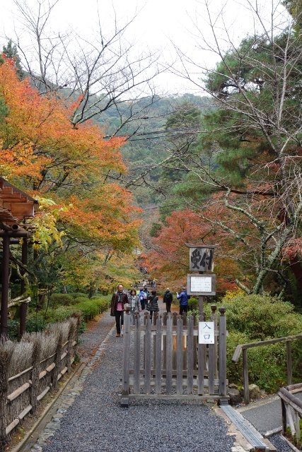 買完票穿過門籬,眼前參道長直,兩側楓林搭掩得令步徑不見盡頭,然葉叢殷紅者不多,僅幾簇顯著轉色中的橙妍。不過「常寂光寺」也是到裡處才精彩,便還是抱著期待向前走。