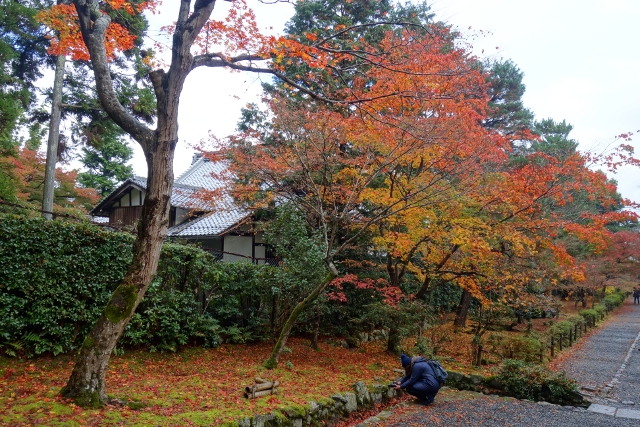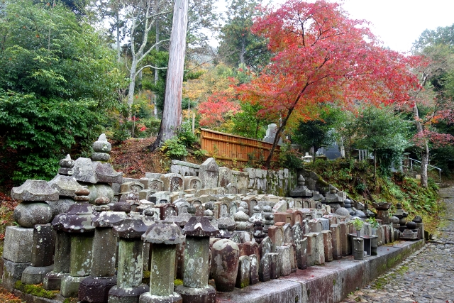 原路繞回了「法然上人廟」,我由另側步道迂迴而下。可能是寺區楓景太過醉人,不少身份尊貴者就算離了塵世,依舊選擇長眠此地,才走了一段距離,便見三位天皇的塚塔併立於山坳,再循徑往前,還有些不同姓氏的家墓,或許也曾在歷史顯赫一時。然儘管碑塚處處,卻未散著森冷氛圍,畢竟路邊探露著斑豔楓紅,引人抬望,行走其間,碑林便漸與寺院石燈、樹下堆岩同化,不知不覺忘了它們的存在。
