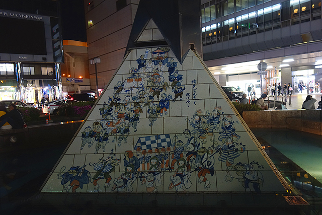 儘管不懂魚頭的來由,穿著造型倒滿好理解,女魚人手持飯勺,顯然取自五月舉辦的「博多松囃子」,這個祭典以騎馬的「福神」、「惠比須」、「大黑天」為核心,名為「咚打鼓」的隊伍伴隨,早年在家做飯的婦女們一聽到奏響,便會衝出門敲打飯勺應和,現今倒成為慶節的壓軸,讓遊客加入依樣同樂。