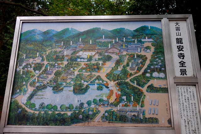 這幾天訪過的寺院多為密教的流派,「龍安寺」則屬於「禪宗」分出的「臨濟宗妙心寺派」,而「妙心寺」其實就在附近,並有著悠遠歷史與廣闊規模,但由於沒有特出誘因,只能註定跟它錯身了。不過根據地圖所示,「龍安寺」也有諸多塔頭小院散佈在林間,然愕然的是,當從「方丈」走出,其餘路線不是設了欄柵,就是遠遠便見牆門壁掩,似乎對外開放的就僅有剛才的「方丈」庭園了。