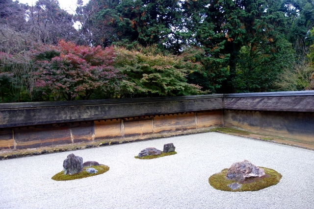所以究竟是蘊含著什麼意義呢?我在來回數了一陣後不禁停步怔視,有人說如此佈局僅是依著日本傳統的「七五三」陽數之理,也有人說來由自「虎負子渡河」的智謎,代表三對虎母子考量著該怎麼分批渡河,才不會讓自己孩子被其他母虎吃去。不過既特意藏隱一石,應還有更讓人深思之處吧。