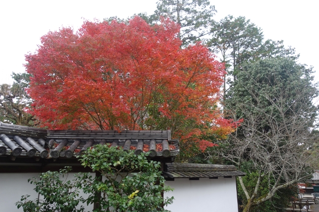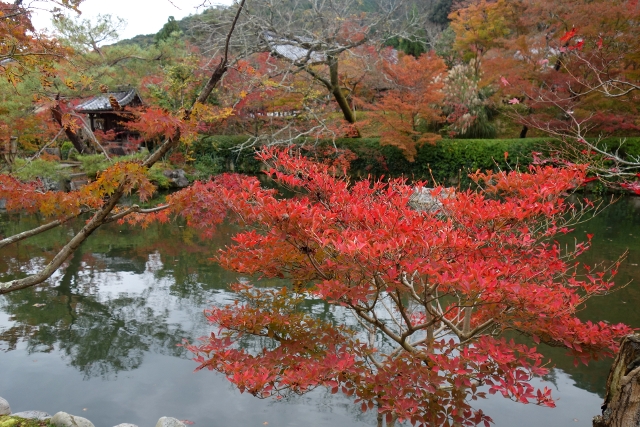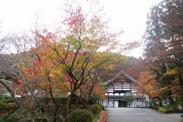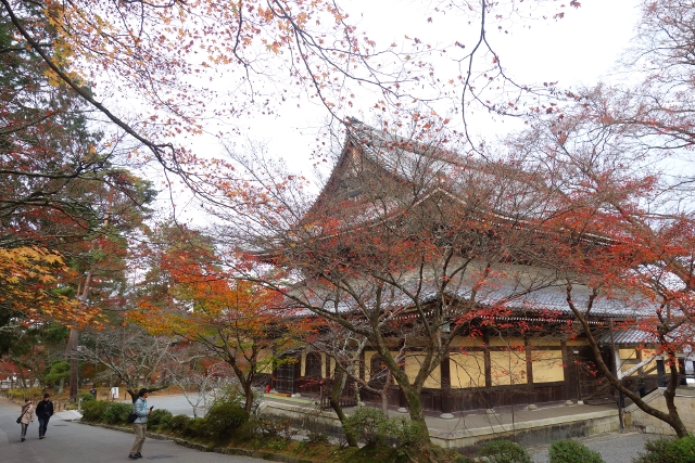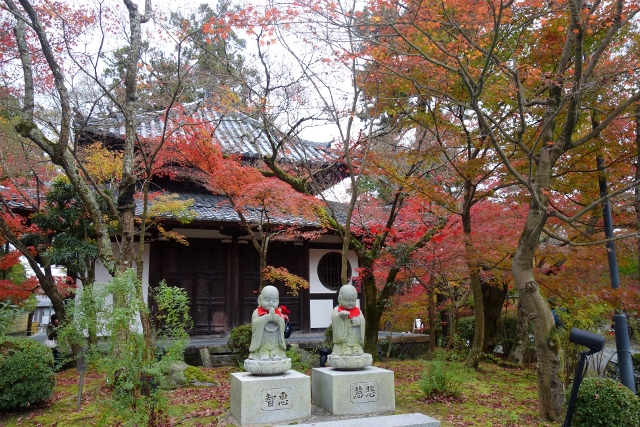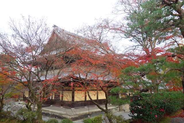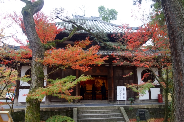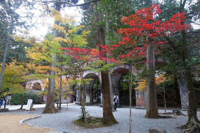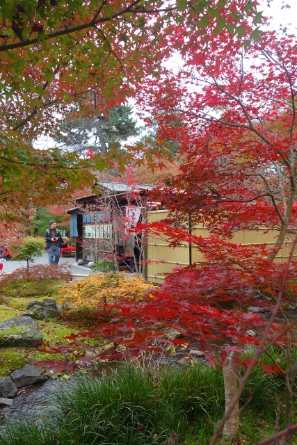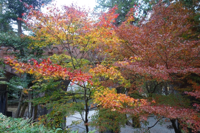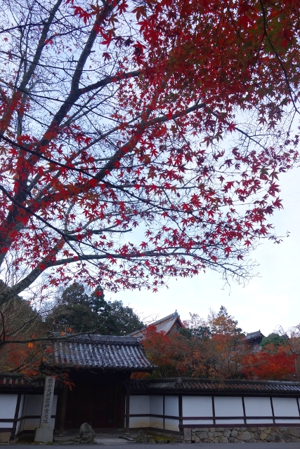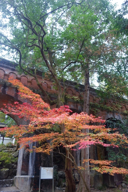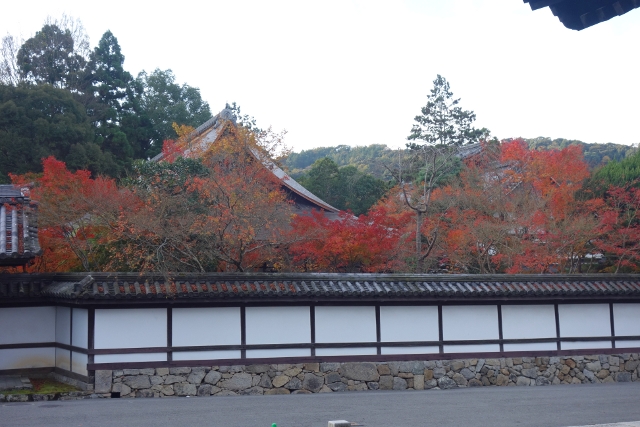 這麼轉繞過一圈後,便得揮別「南禪寺」往正途邁進了,離開之時,我看了看隱於牆後的「天授庵」,那是晚上預定到訪之地,簷上探露的楓色相當豔麗,跌墜的落葉替去簷瓦原本的灰沉,很讓我期待。