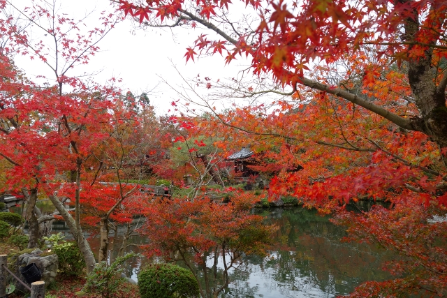京都的賞楓寺社眾多,很難排出個名次順位,但若要選出前三,應該就是「永觀堂」、「常寂光寺」、「東福寺」的擁護者在作最後纏鬥吧。所以我也將旅程末三天的早上排給它們,期待能見著遊人較為稀少的清幽景貌。不過就如我於櫻花季遇上了連綿雨日,這回運氣同樣不甚好,氣象預報昭告著有道雨鋒即將襲來。原本睡前想祈禱,但又很兩難,早來影響「永觀堂」,晚到便毀了「常寂光寺」,手心手背都是肉,只能聽任天意了。