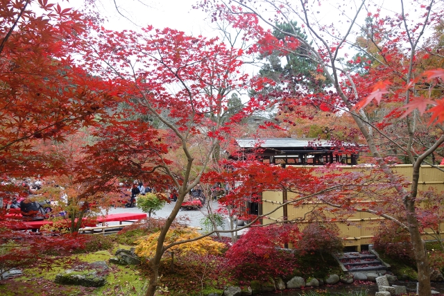 既有如此美景,拜訪之人自然眾多,儘管寺還未啟,已有不少遊客從票亭排出長列。我趕緊跟了過去,但等候之際仍忍不住踮起腳尖往牆內窺望,想提早目睹院中麗景。須臾,售票窗開啟,人龍緩緩推進,我也終於買到了票,穿過中門,真正進入「永觀堂」的主院。