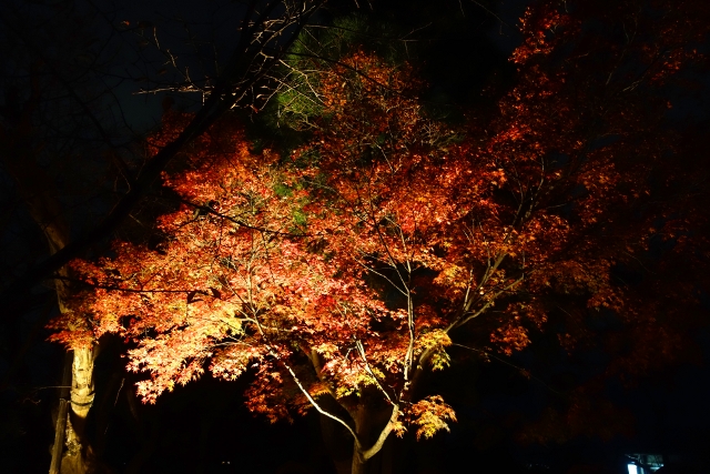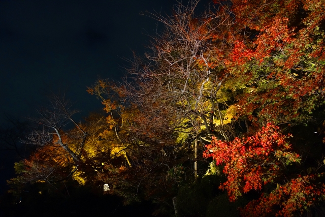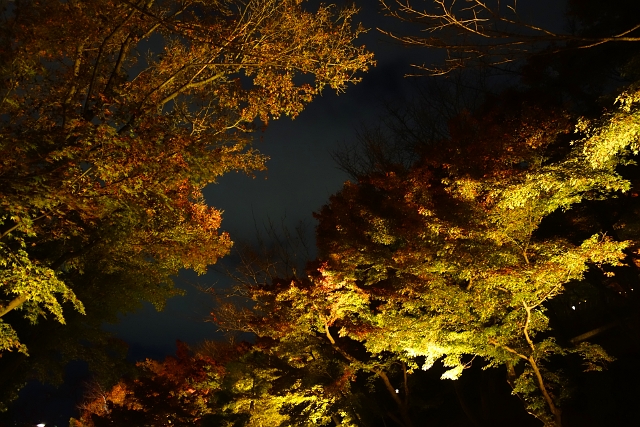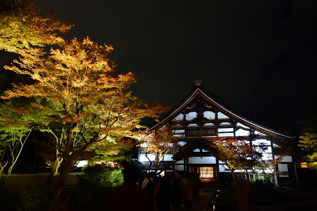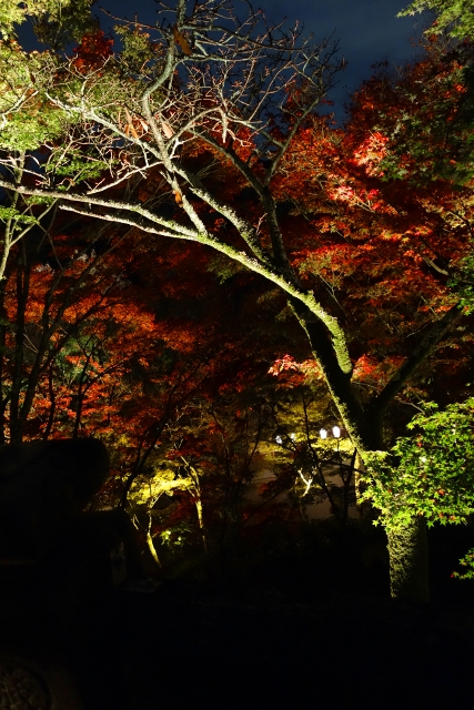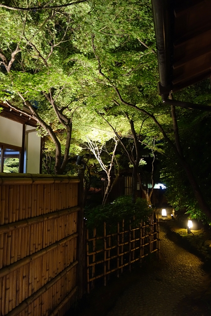 曾經,我在這兒兩度拜訪「茶寮都路里」,只為了多嚐它的聖代與霜淇淋,不過此時店家早已歇息,我能做的,僅是鑽入附近的「石塀小路」,看微燈暈亮靜宅旁的竹籬碧樹,讓離塵的它在夜裡又多了一重幻美。而既已走到這兒,自然也想看看「高台寺」的夜楓,來個重遊回顧。我望著山牆斜劃的入口,記憶裡還有「彼心庭」的淨沙流轉、垂櫻輕盪,儘管現應僅剩空枝,但替上幽寂之色的它該有另份風姿吧。那「開山堂」的環圍水光、隱於坡林的雙生茶屋,若再綴上些楓紅,又會是怎樣引人懷想的景畫呢?