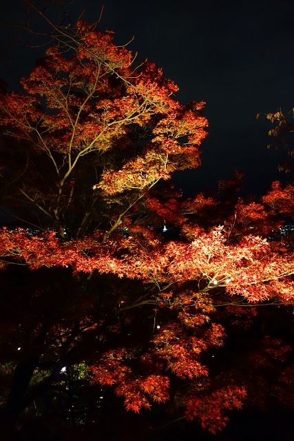 與行道旁的楓樹相較,谷地的艷色沒那麼濃,或許是過多樹種將它稀釋的緣故,但在夜色覆籠下,幽寂的氣氛飄漫而上,讓背後的喧鬧雜語都淡緲許多。我盯著遠方炫亮的「子安塔」,讓自己沉入回憶,將櫻花季這兒的日與夜都走上一遭。