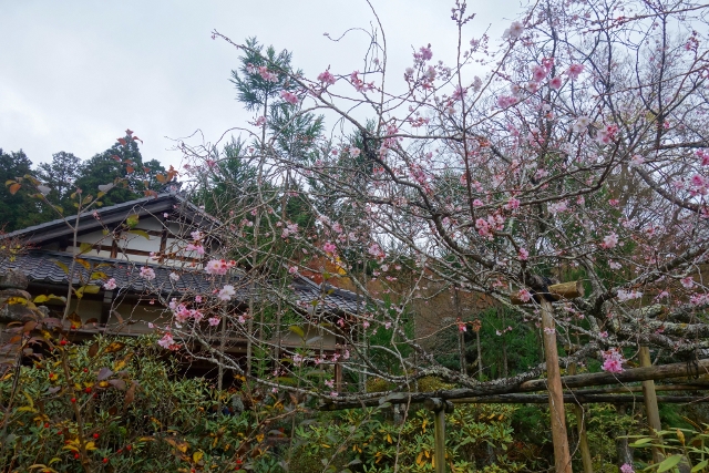 進院時瞄到「不斷櫻見頃」的告示沒特別細思,原來指的便是這,據說它不只開於初春,還搶著與秋楓爭彩,挺過了凜冬霜雪,直至春時,雖非如其名所稱花期整年不斷,依舊不可思議。或許是它不欲僅絢爛於剎那,寧願細水長流吧,然似也因為如此,倒不像一般樹種枝頭滿盛,僅是很秀雅地碎點在被棚架支起的開展樹枒。