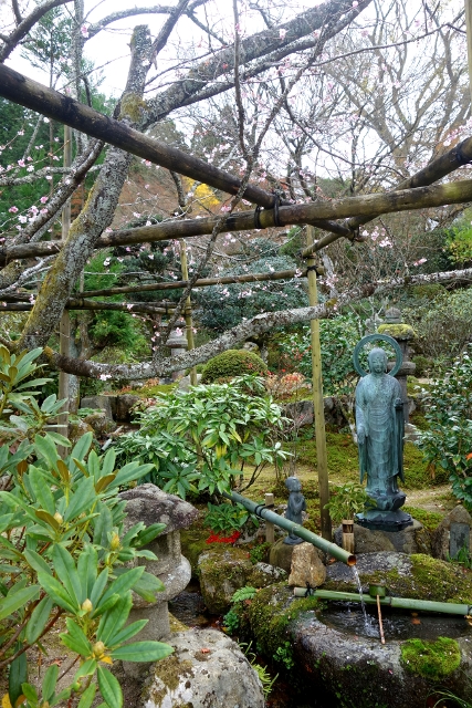 它跟「寶泉院」一樣,都是「勝林院」的附屬堂舍,相距不過幾步路,很輕易便可在主道找到它的門面。可能是重新修築過的關係,牆柱的木色相當鮮亮,簷瓦也簇新,少了古院的韻味,但反正沒什麼別的選擇,便依舊走進探探。