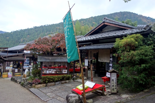 所以亁脆拒絕這些漬物的誘引,僅偶爾經過手工藝品店時,進去逛望了一下。逛攤之餘當然也在思尋午餐該如何解決,是有經過外表簡樸但透著雅緻的小店,但一來看不見菜單不知價位會否令人咋舌,二來可能是過了正午,清冷的廳裡讓我無法依人潮推測餐食是否美味。就在一路猶豫一路跟各樣餐廳錯身的當口,我望見了「呂川茶屋」,一間外觀風雅的小舍,印象裡好像有些網誌曾提及它。