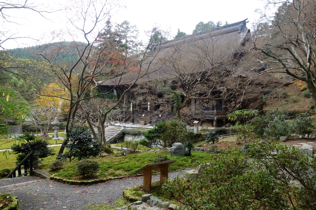 所以,現在的我有得到所謂的完滿嗎?我思索了一下依舊不太清楚。不過至少這樣行走也算是種參拜之旅,穿過彷若前園的「寶泉院」松枝蒼勁,再至「勝林院」堂殿感受佛前的靜定空明。況且楓豔之色不過是四季流轉的一瞬,入冬的蒼茫不也是古寺的其一樣貌嗎?它洗去遊人繁雜,襯和著殿舍的質樸,讓人更能窺見內心,或許,這也是大叔想讓我明瞭的一種完滿吧。