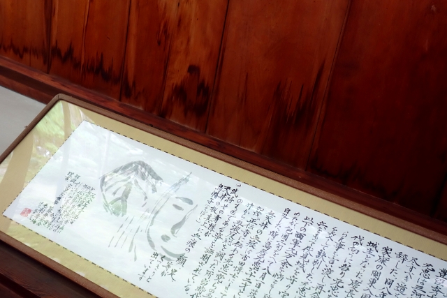 為了超渡亡魂,這些被稱為「血天井」的屋板被分送至八處寺院淨化,「寶泉院」便是其一。根據廊頂高掛的圖文解說,此處的血痕有顏,足,烏帽子之形,且都經過現代儀器鑑定。烏帽子我無法確認是指帽冠或什麼別的物事,足的部份則任老先生怎麼比劃我也看不出端倪,倒是當他指向另塊略帶污漬的天花板,我還真能辨出微微的眼鼻口痕,很令人悚慄。