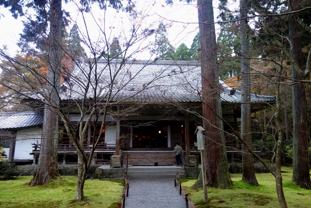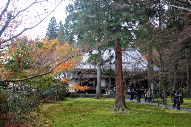 我依循參道前行,一面認真辨著,而當視線落在幾棵枝枒細瘦的禿樹時,滿腹疑惑頓時散逸,事實就是,我來的時日過晚,此園主要的楓紅早已燃盡。怔怔盯著亁枯的空枝,我心裡的沮喪滿溢,雖已知此院楓期約較京都市內的早上一週,但五天的訪程怎樣也難兩者兼顧,原想著或許還能僥倖見到些殘色,誰知老天不給情面,錯過就真的是錯過了。