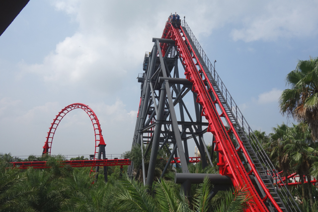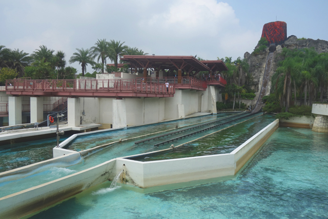 由於怕熱門設施人會排太多,所以我們選擇先往陸上那邊衝,