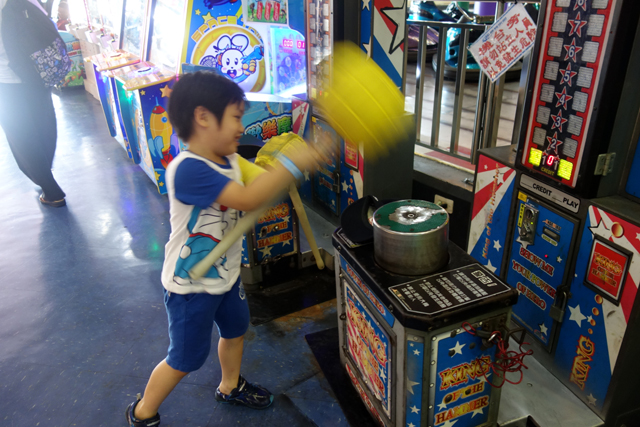等待的地方在小遊樂場,由於不想在這邊被坑錢,所以只好帶底迪假玩,敷衍他一下。