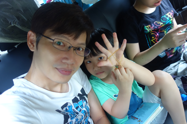 車上兩個小孩照例是瘋瘋癲癲玩到翻過去,