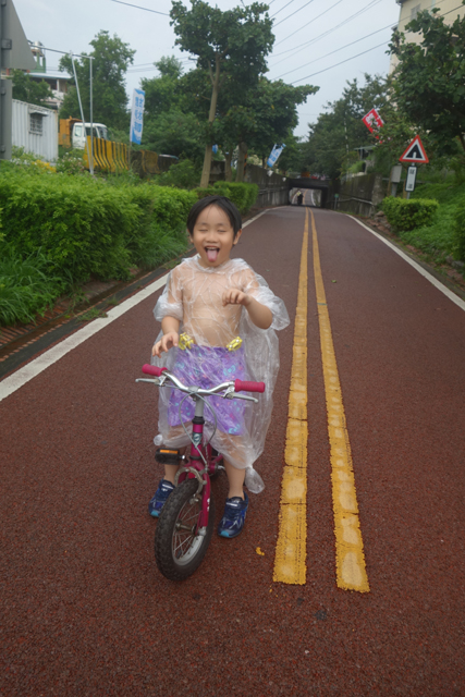 然在狂笑中邊騎邊拍他的美樣時,雨又變大了,