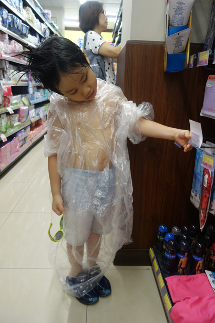 首先能用上的就是租車店贈送的雨衣。