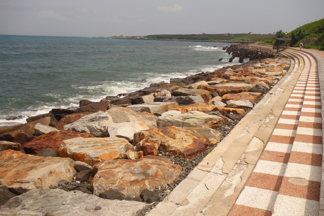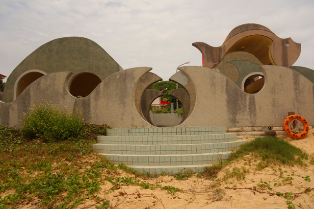 沙灘邊的石亭有附帶很特別的造景,像是海浪的形狀。