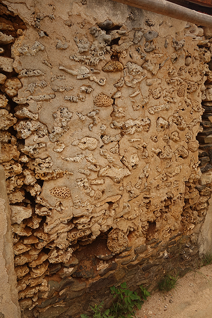 牆壁看起來有摻入當地海灘的石頭,形成自然的孔洞花紋。
