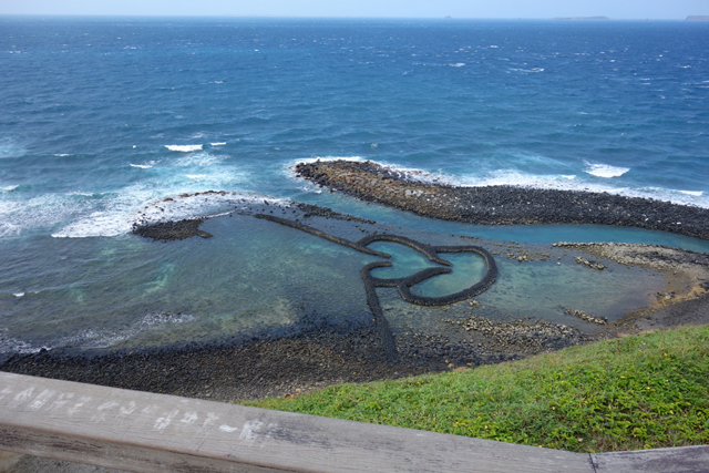 就這樣一路繞到島的東北,終於….我們抵達「七美」最知名的地方,「雙心石滬」~~~~