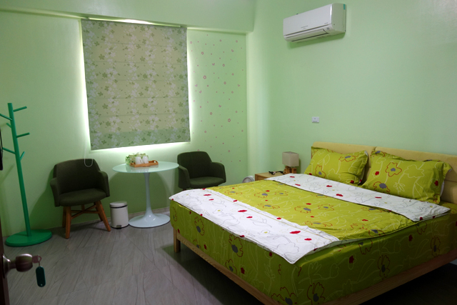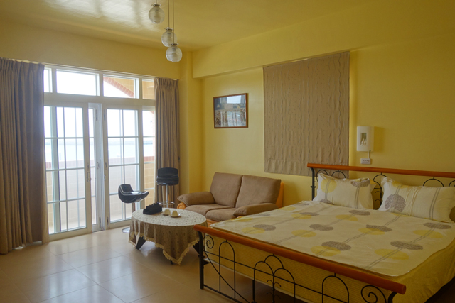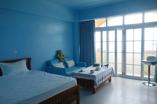 綠色的這間比較小,而且沒有陽台,也不面海。