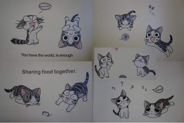 隔壁是黃色房,比較溫馨,特別的是牆上有很多貓咪壁貼,