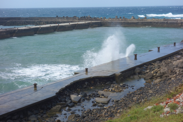 港口的上面蓋了這樣的涼亭,讓人居高眺望海浪憤怒的模樣,