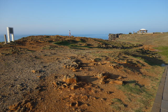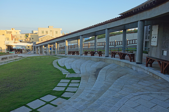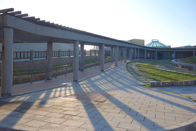 往海岸的階梯旁有這樣的地質展覽館,建築看來經過特別設計,