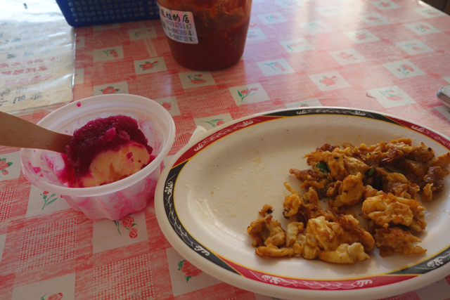 而某人本來一路嘀咕沒吃到小管麵線,但坐下來居然是點了海膽炒蛋….