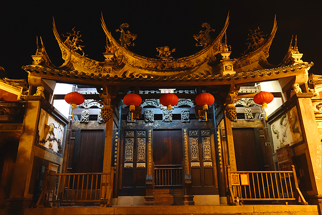 夜裡自然是關門了,無法得知裡面是不是有很厲害的雕刻,不過外面是很有氣勢就對了。