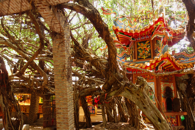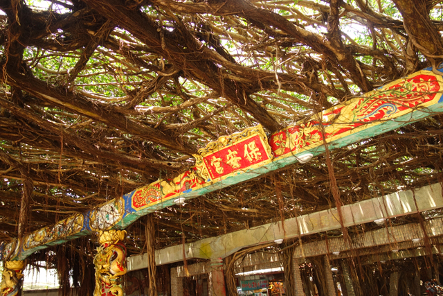 棚架的盡頭是間保安宮,艷麗的宮廟建築跟榕樹氣根搭起來的景象好特別。