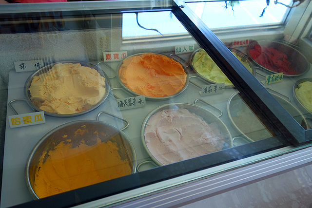 這冰店很不合群,沒跟小吃攤擠在一起,反而是要我們頂著烈日往路的另個方向走好長距離,
