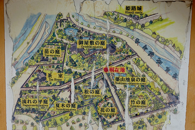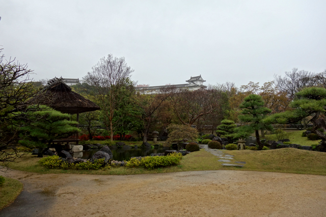 而雖說已行出城區,旁邊其實還有座築於近代的「好古園」值得探訪,當初是在調查午餐著落時發現它的存在,點了網頁一瞧也覺其佈局清雅,況且只要在購買「姬路城」千元門票時多付四十便可一遊,相當實惠。故對日式庭園極為醉心的我,自然在入城之刻便已買下套票了。