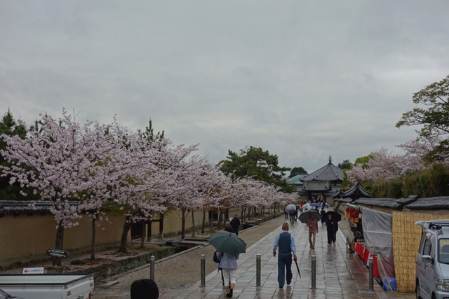 突然間,我有點懶了,就當疾行的車輪是我雙足,攜我奔馳過也訪遊過「佐保川」之櫻吧,畢竟此時的我心靈已足盛。「東大寺大佛殿」的簷閣高廣、「二月堂」的階院清寂、「春日大社」的燈徑古幽,而「法隆寺」那浮顯於櫻毯的瞿傲形姿更是幅幻麗之景,就算時空如何遞移,依舊因著深烙,無比明晰。