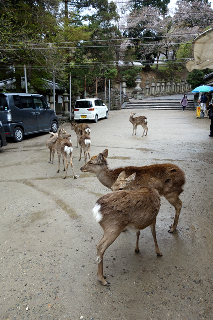 端詳一陣後,我沿著被石燈籠列飾的階路朝東而行,本以為這區應皆是僧人的清修所了,但很妙的是居然出現一間小雜貨店,店門還醒目放了櫥櫃販售鹿仙貝。或許因著此店存在,鹿兒們也聰明地在這結群徘徊,等候可趁之機。然牠們失算的是,大部分觀光客根本不走此路啊。