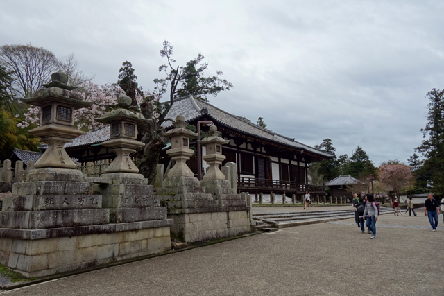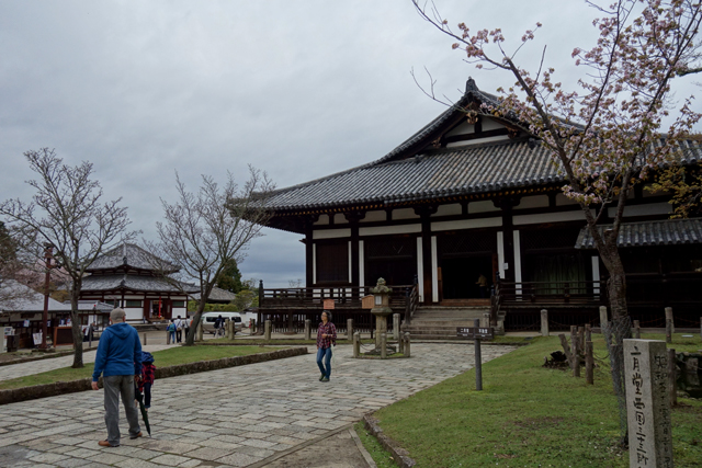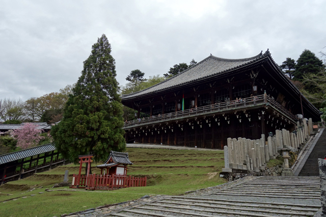啼笑皆非地跟令人又愛又恨的鹿兒說再見後,坡徑終於行抵一方闊地,也就是地圖所指的另區參訪點。其邊處諸多殿舍環列,左側是四方疊簷寶頂的「四月堂」,模樣小巧,再過去被院牆閉鎖的,為敬奉祖師「良弁僧正」的「開山堂」,是少數存留的「鎌倉時代」建物。