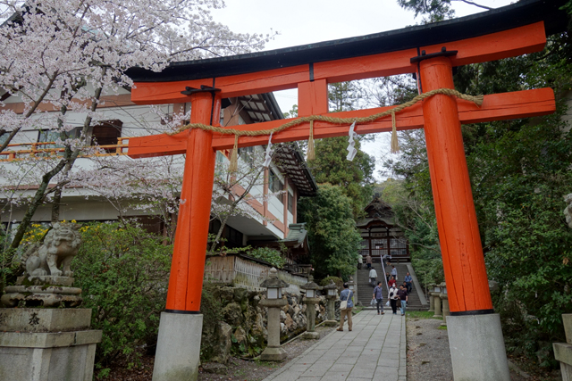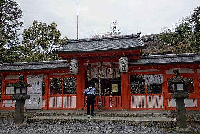 不過此處其實僅為「宇治鎮守明神」的下社,再朝山上走,還有其另個半身「宇治上神社」。可是往這座的路程就比較遠了,得花上不少腳力攀坡,才會再看到另個鳥居屹立在林樹間。然一路上群櫻繁茂,在蓊鬱中開漫點雪,倒也不讓懶於爬山的我感到疲累窒悶。