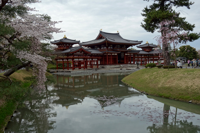 不知該說體貼還是會做生意,明明沒隔多少距離,「中村藤吉」在這兒居然也開了家分店,據說還有二樓的開闊窗位,讓客人望著川流啜飲醇茶。但想當然亦與我無緣,頂多就是從外院穿過,看看被櫻樹點綴的雅致籬舍,然後一路快步趕往「平等院」。
