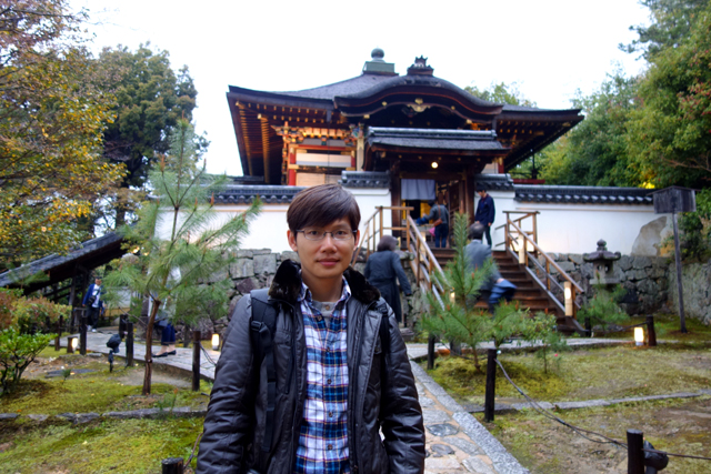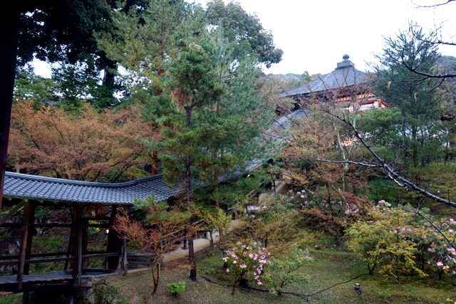 但所謂的樂極生悲大概就是這樣了,霜淇淋才幾匙入口,雨滴竟又滴滴答答飛墜而下,將我狼狽逼入廁所旁小空間。早知如此便先進「高台寺」訪觀了,至少還能多拍些舒朗景致。但人生本就是因著無知,才會充斥無限的懊悔與莫可奈何啊。也只能接受事實,徐緩享用完霜淇淋,再登階行往「高台寺」。
