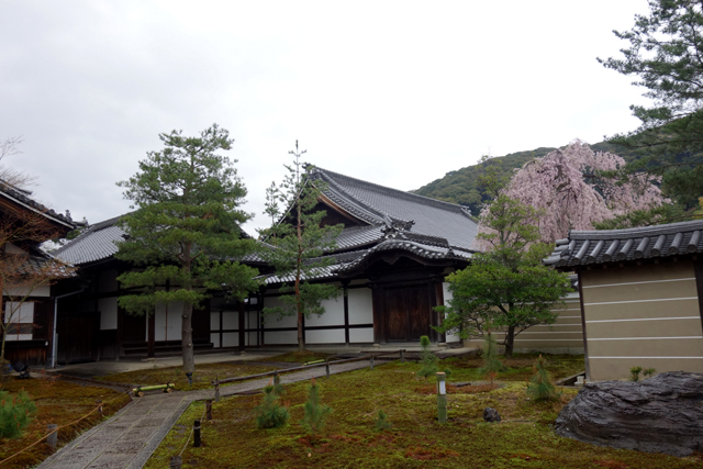 此寺與「金閣寺」、「銀閣寺」同屬發源自「禪宗」的「臨濟宗」,但後兩者是「相國寺」派,它則為「建仁寺」派。寺前廣場東側闢了處不知名院落,立著數十尺高的「靈山觀音」,然因其院牆半掩,觀音僅現著頭肩。我走近門口窺看,但似乎不是無料觀覽,只能在訝望中行略。