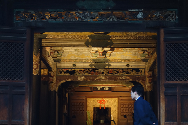 我由中道行往「開山堂」,這兒敬奉的是開山祖「三江紹益」。不似「方丈」為火劫後重築,此堂仍為原本建物,廳內樑架雖已漆色斑剝,仍能從其橙燦紋繪感受當時華美。但照理說,院內該有敬著「釋迦如來」的本堂,並以之為核心,然不但看似被「開山堂」盤據了地位,也不見其偏立哪個角落,頗令人費解。難道其壇座隱於「方丈」廳內?抑或堂殿早湮滅在舊時火劫?