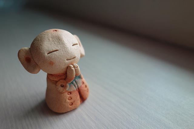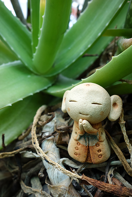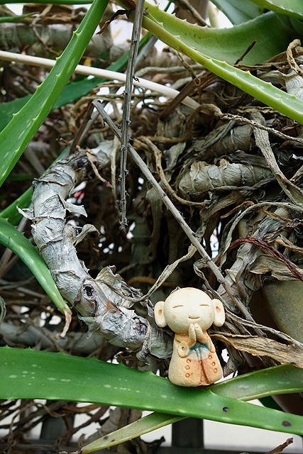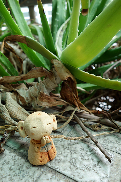 在狐疑中左探右看的當口,我望見一家門面低調商店,沒有客人訪觀,只有略顯凌亂的木石雕刻品散置。本我也要在無意識中晃過,豈料卻瞥見門外矮几放了一整盤小地藏娃娃,那童趣的模樣瞬間擊電,幾乎要讓我興奮叫嚷出來。於是我立刻蹲在几旁挑選,花了好長時間端詳比對,最終在那些眉目稍異、姿態略微不同的石偶中,找了與自己最投緣的,然後興高采烈請老闆幫我打包。