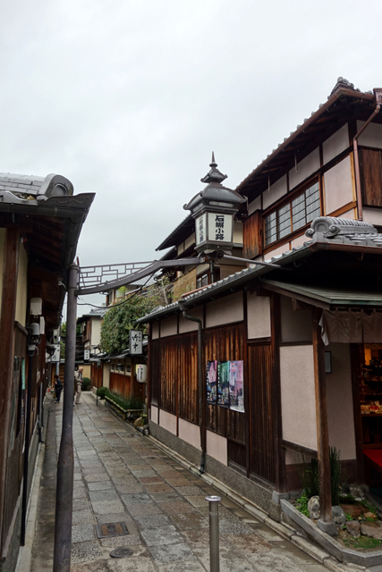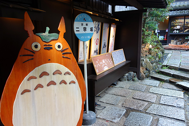 可是雖陰錯陽差領養了小地藏,但依舊沒遇上網路所說列滿雕塑的巷口,而「二年坂」已走到末尾,接入「寧寧之道」。「寧寧」這奇妙的路名來自「豐臣秀吉」妻子,她出家後的法號是「高台院」,而此徑東側座落著「高台寺」,可說這附近的建物都與這女士的故事凝融一起。
