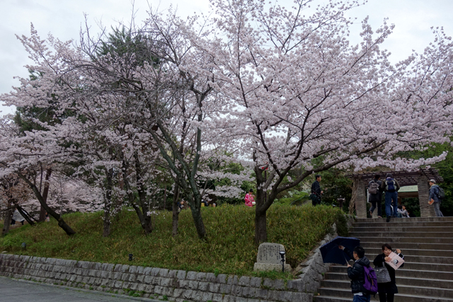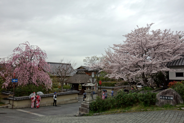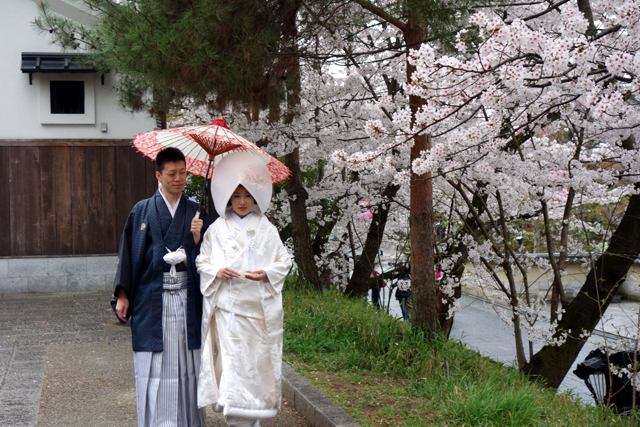 我繞去寺外先望了幾眼,不過由於傍晚還會來賞夜櫻,便也沒多費心神端看。不過寺前廣場的邊角有塊小公園,倒讓我花了點時間閒步,畢竟粉櫻將其綴得秀美,連新嫁娘都穿著白無垢在花間緩行,留印生命中最值紀念的一刻。