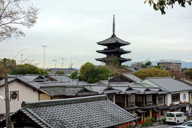 從「清水寺」轉了出來,我又回到清晨行經的「三年坂」,這條階徑其實也稱作「產寧坂」,因產婦可藉此通抵「清水寺」內的「子安塔」,在那兒求得順產、母子均安。但「三年坂」這唸來相似的名稱也有各樣來由,一說是因其闢於九世紀初的「大同三年」,另一就很偏鄉野傳奇,稱若在此跌倒會有厄運附身,倒楣三年、折壽三年、三年必死之類的說法甚囂塵上、以訛傳訛,這謠言的始作俑者應在靈界笑瘋了。
