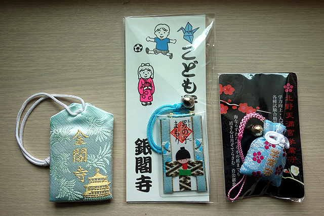 可是一路上商店羅列,這關過了還有別種試煉,萬惡的藝文紀念品擺著各樣耀目姿態跟我招手。這種買了不知能作啥、擱著又覺佔位子的物事,每年都以眩惑造型勾著我從世界各地採購回家。這回到京都,御守之類的由於多半不怎麼花俏,勉強還有定力,算了算只在「北野天滿宮」、「金閣寺」、「銀閣寺」選了覺得趣緻的。