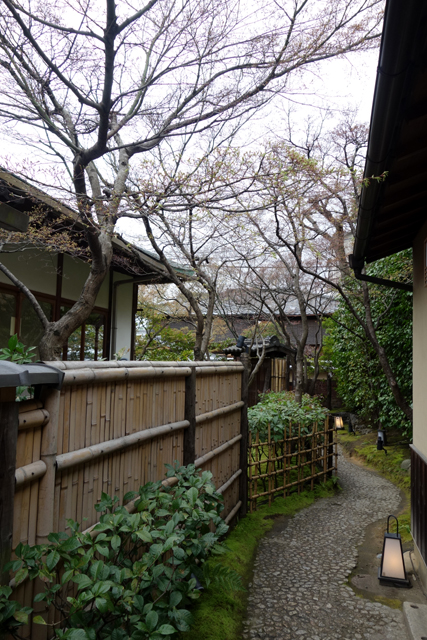 來京都的首日,我曾在「祇園」拜訪過「茶寮都路里」,但短暫的一夜相聚自無法滿足我對茶點的無窮饑渴,既知「高台寺」附近還有另家分店,又怎會輕易與它錯身?而當從公園轉出,果讓我發覺其隱於附近低調院舍內。看看手錶,差五分便是十點的開店時間,但不知是否遊人都被「清水寺」引去,沒見著排隊等候人眾。於是我輕鬆在院內閒晃,抬望敬奉「大黑天」的神社唐破風瓦簷,很快便被迎進空寂店內當貴客了。