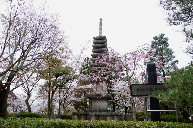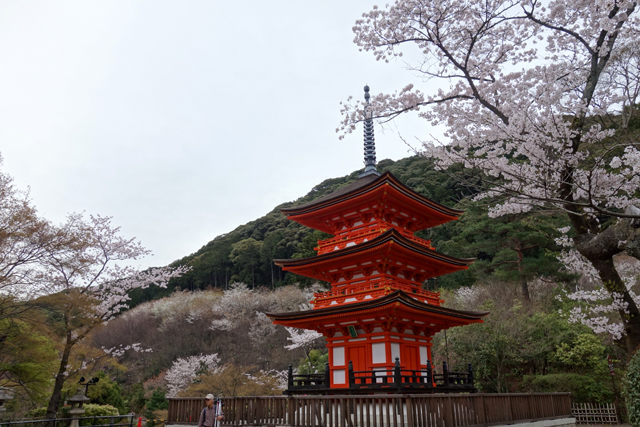 之前遠望「子安塔」時覺得渺遠,但路途走來卻不漫長,或許為視覺上的誤導,畢竟它雖也是三疊結構,卻比寺前那座「三重塔」低矮許多,若在潛意識存留同等高度的暗示,自會在遠望之下將距離估長了。這座本立於「仁王門」附近的小塔敬奉著「子安觀音」,為懷孕婦女的敬祈之地,但對像我這樣的旅人便是另個遠眺所,在抬望群櫻環綴的艷塔之後若再趨前步近,就能將視野循宛如雪掩荒枝的谷地,帶至塔殿橫列的寺景。