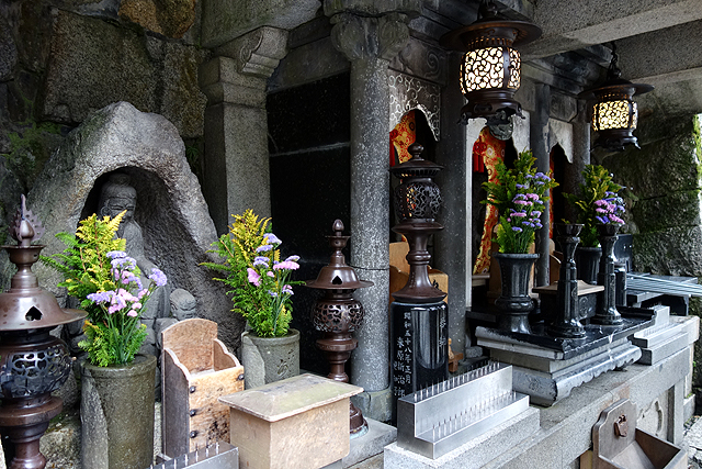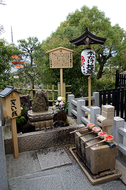 儘管「本堂」人眾流水來去、雜語紛擾,但若將視線落於寺谷,景緻還是清幽的。我走走望望,自然也不時停步,放空思緒去瞭瞰,如此又沿著原路走過「奧之院」,在「子安塔」岔路口直拐往下,回到了「音羽之瀧」。