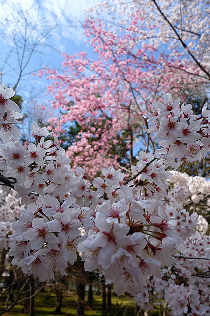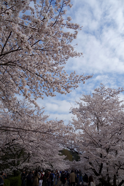 徐緩踢著腳步下行,看著歡鬧人眾,也看著繁盛櫻朵。在這樣的氣氛中,我突然覺得花樹的綻放倒挺適合某種直白說法,像炸開般,以無聲的鞭炮奔響,從枝頭竄入天雲,也擊入人心。此時真摯感激老天爺多給了一日艷陽,讓我同時望見了滿開的「哲學之道」與「蹴上鐵道」。